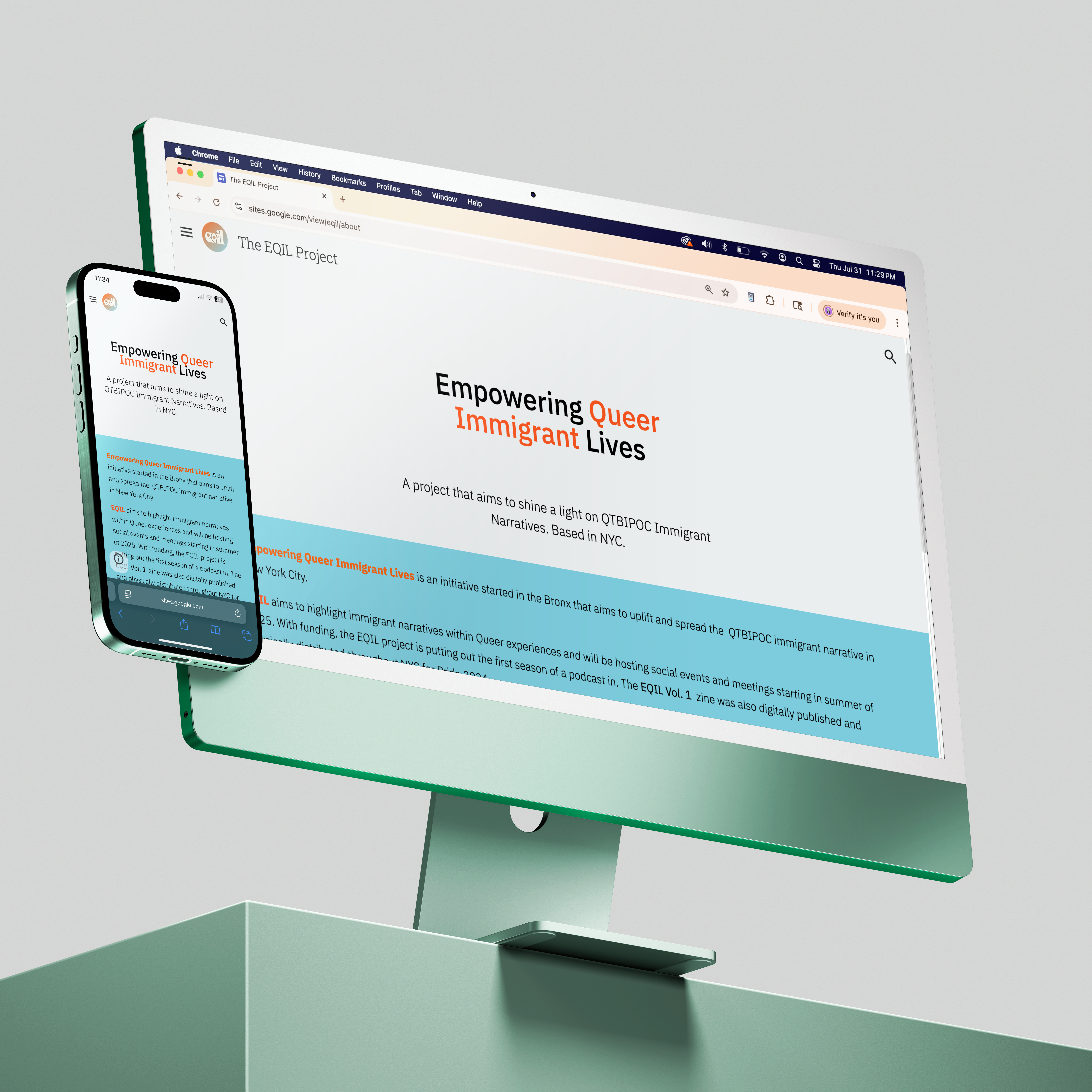 The EQIL (Empowering Queer Immigrant Lives) Project puts forth media projects to reflect real conversations and aims to cultivate spaces for QTBIPOC folks. As a Design and Comms Lead, I have designed the logo as well as curated a visual identity to be utilized across social media, physical promotional materials, website and more.