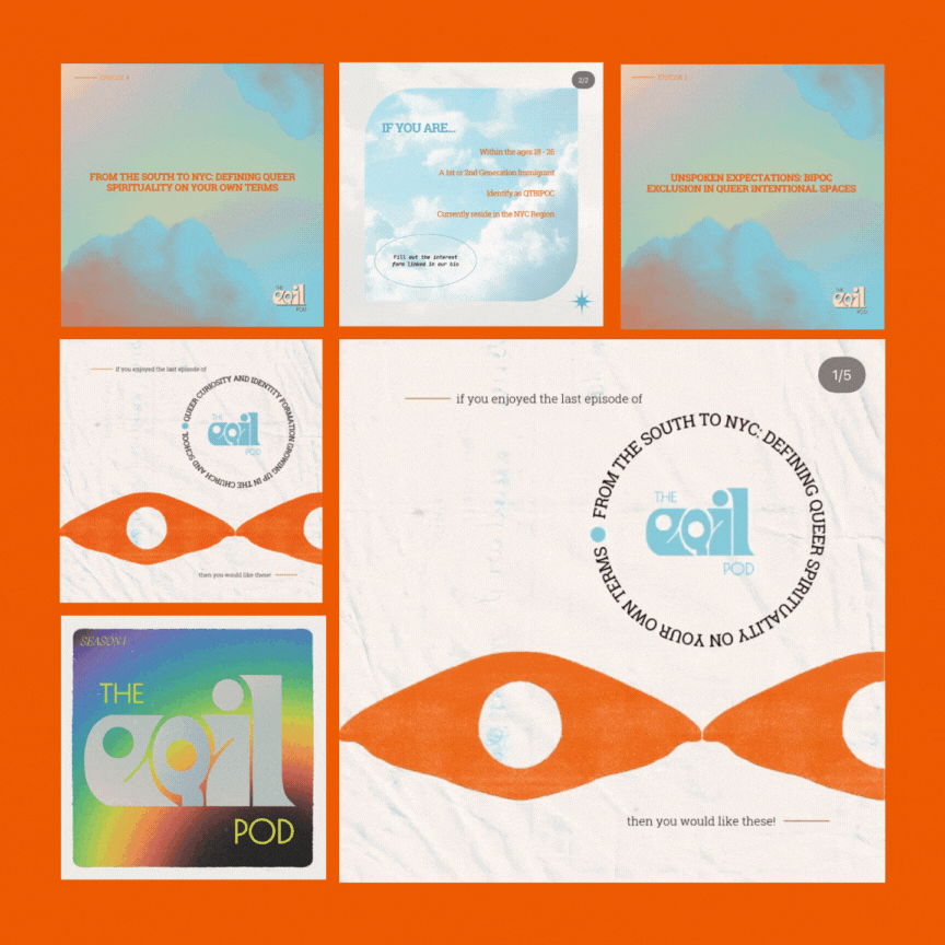 To create a fun yet personable logo to represent all that the EQIl Project already is and aims to be, this type based icon is blocky yet bubbly. EQIL would not have begun without the push for a space to be held for experiences that are often dismissed alongside intersectionality. This initiative began after my co-researcher and I noticed a gap within our community which in turn has turned into media projects that hold close to a “for us and by us” standard of accountability that our peers mentioned was needed for a physical and digital space. With a capitalized “Q” for our pride in Queerness and a nod to the very real immigrants behind EQIL with the “i”, this logo captures the very essence of the project.